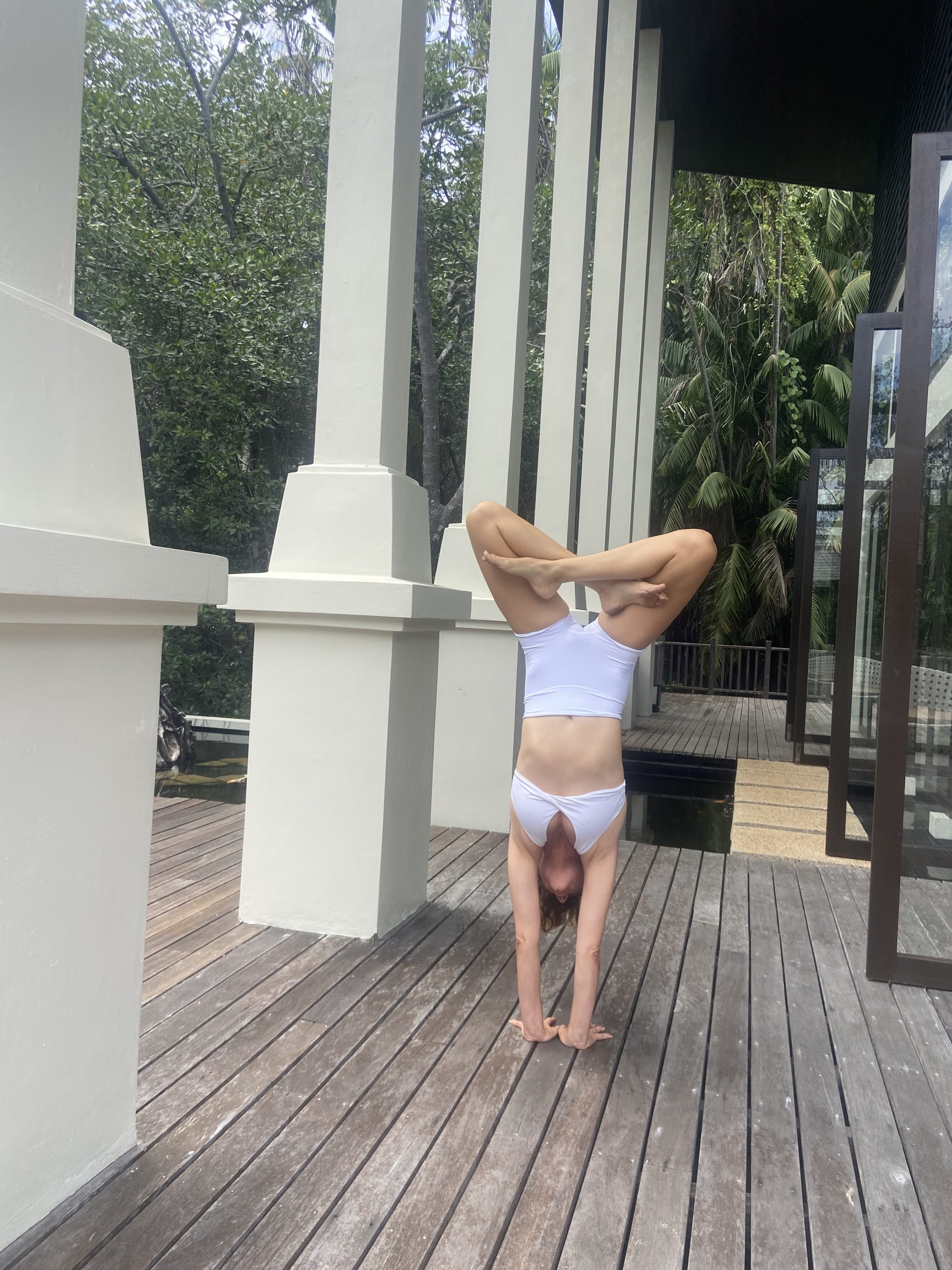 – working on/ towards/ shapes / one arm/ side bends/ movement in handstands/